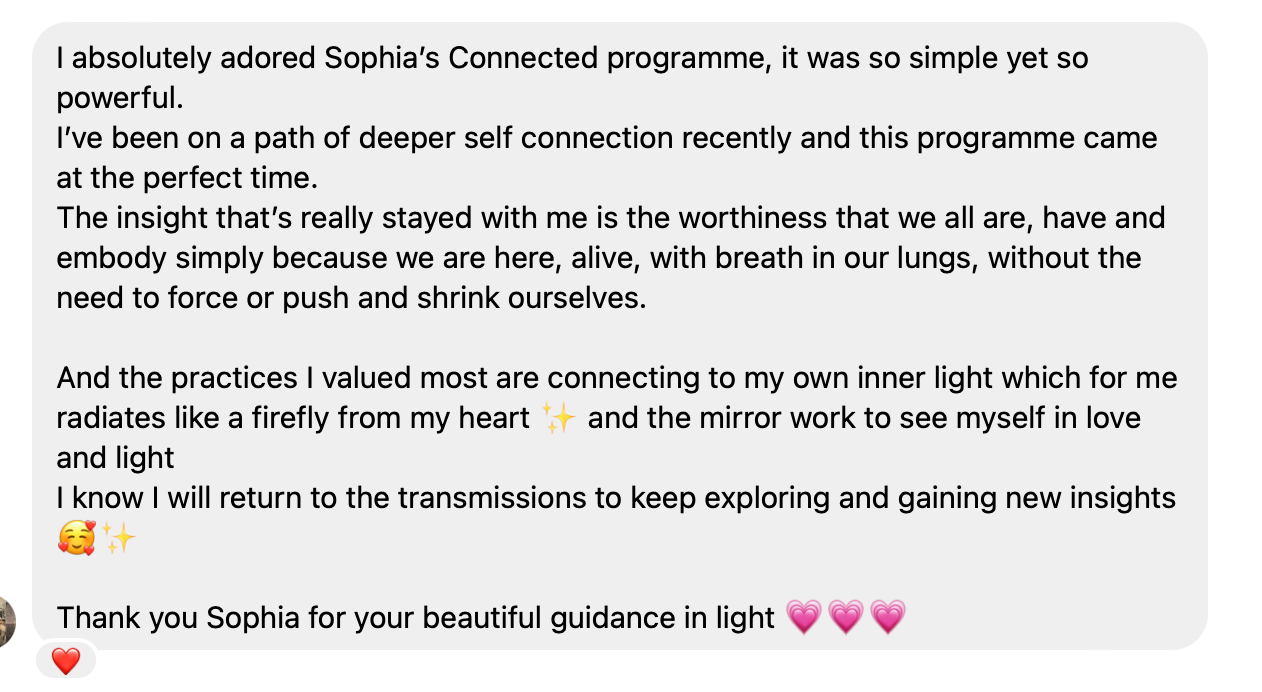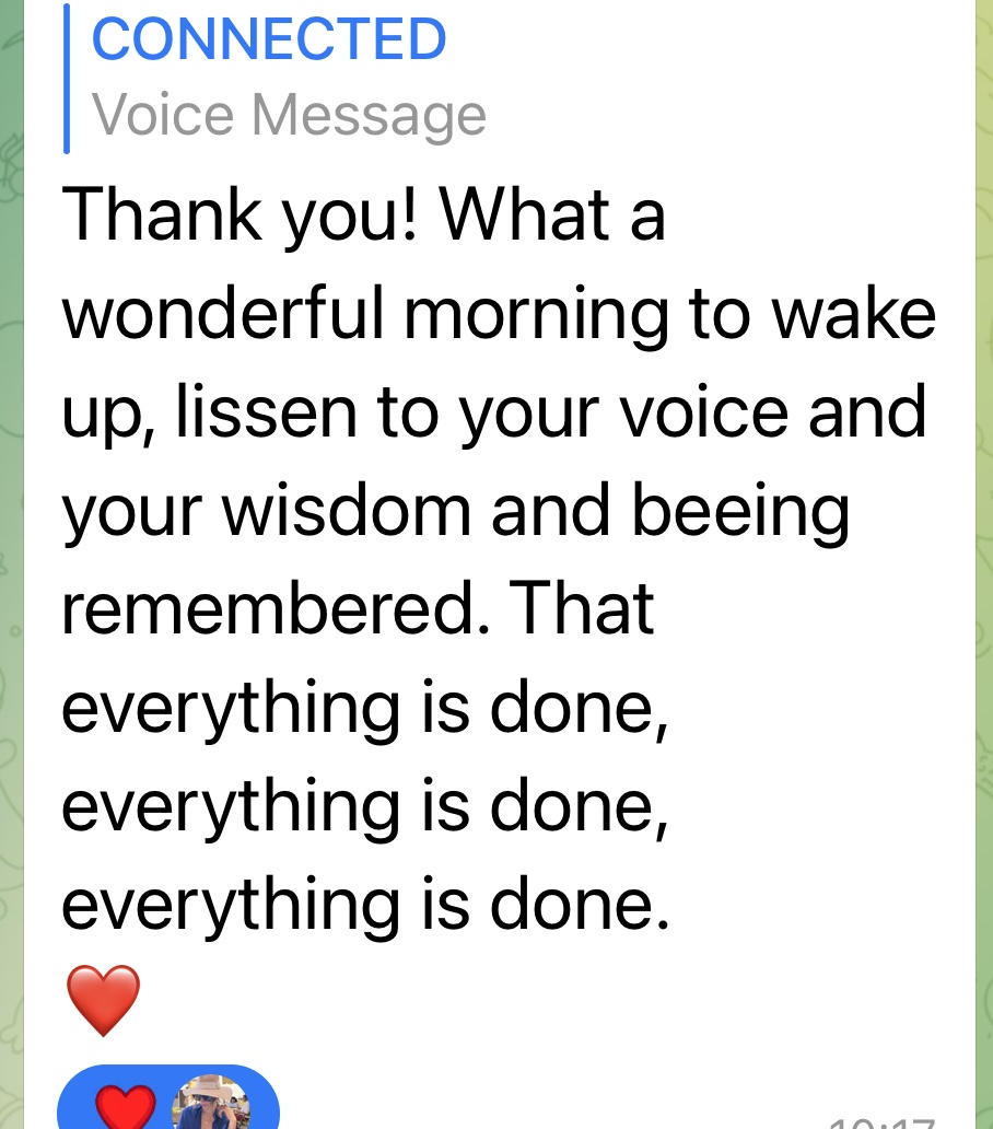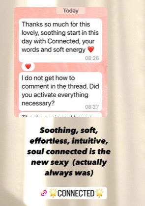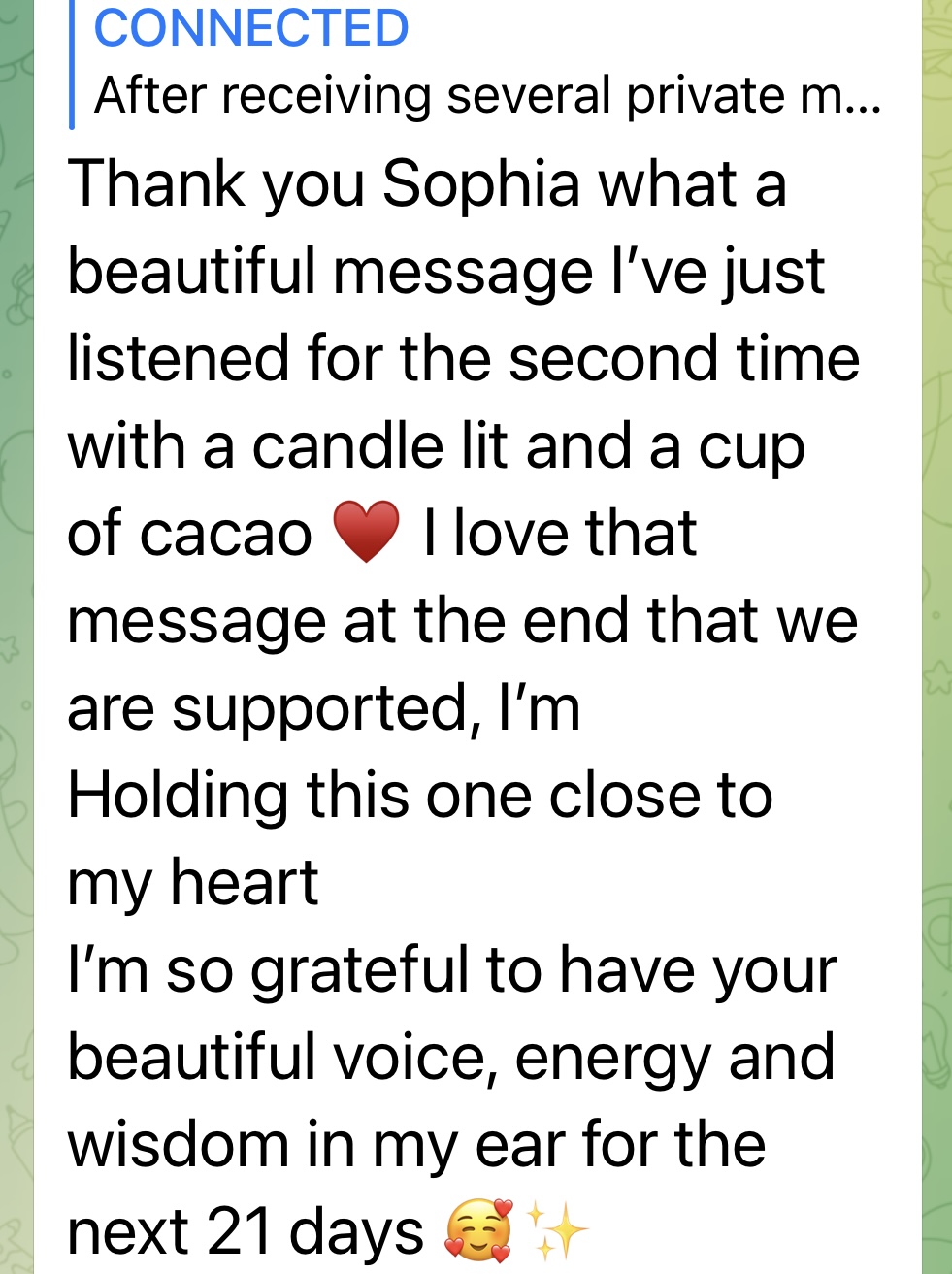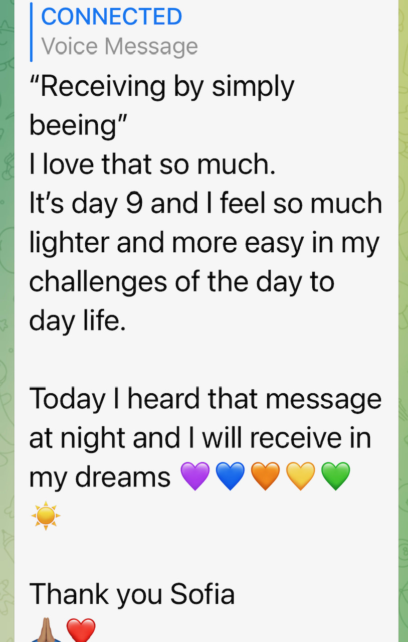 But Connected is more than just receiving transmissions. Throughout this transformative journey, you'll engage in short rituals designed to integrate the experiences and solidify the positive changes within you. This holistic approach ensures that your growth extends beyond the program itself, becoming an integral part of your ongoing journey.