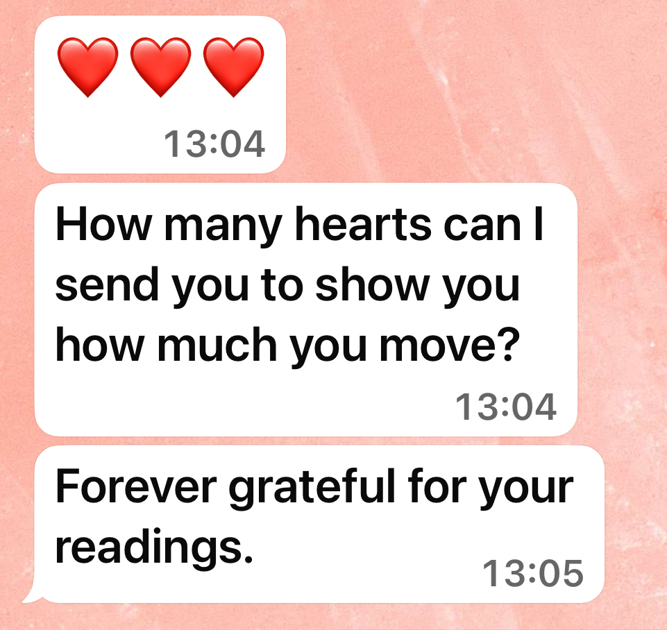 I tune into your situation and deliver your personalised reading within 24–36 hours